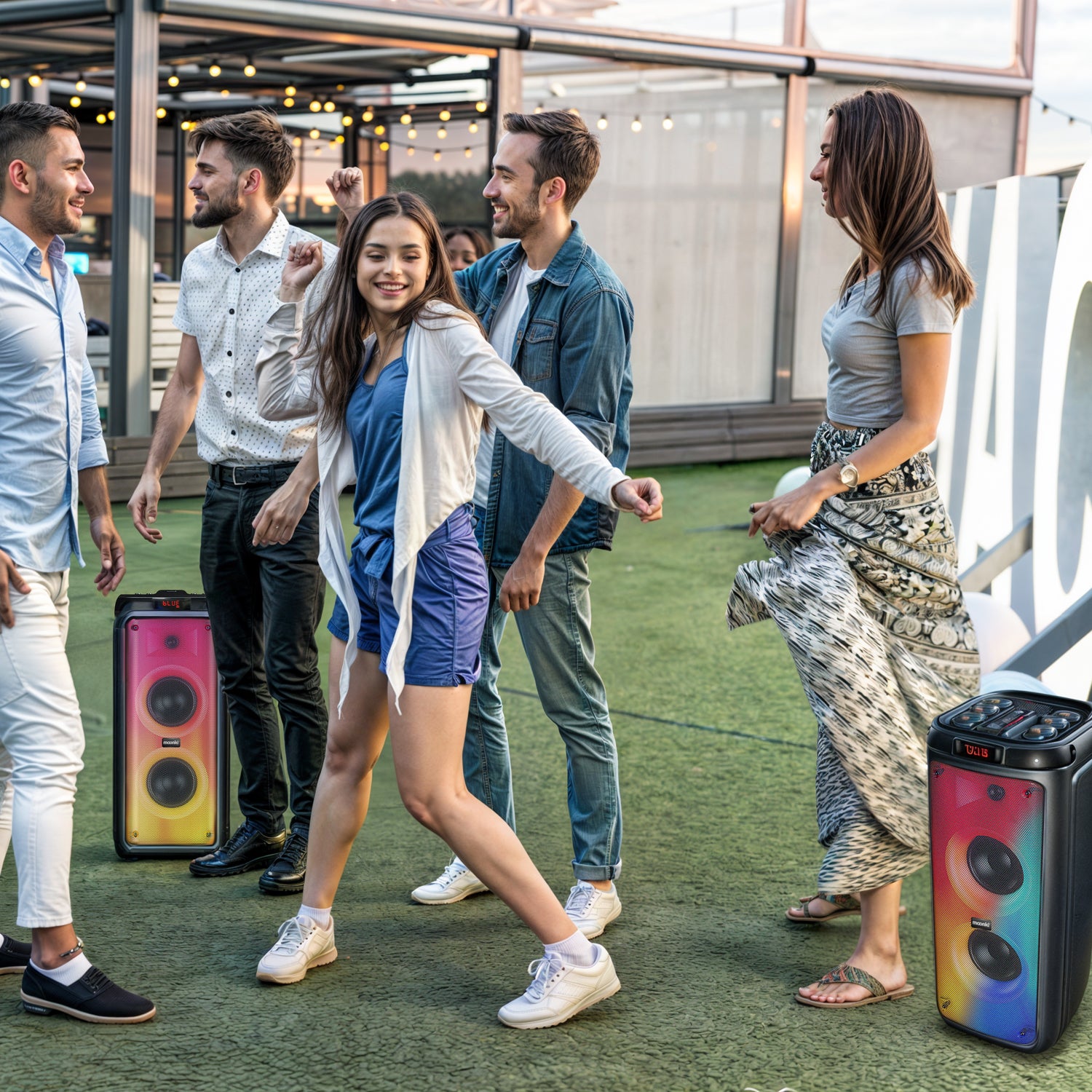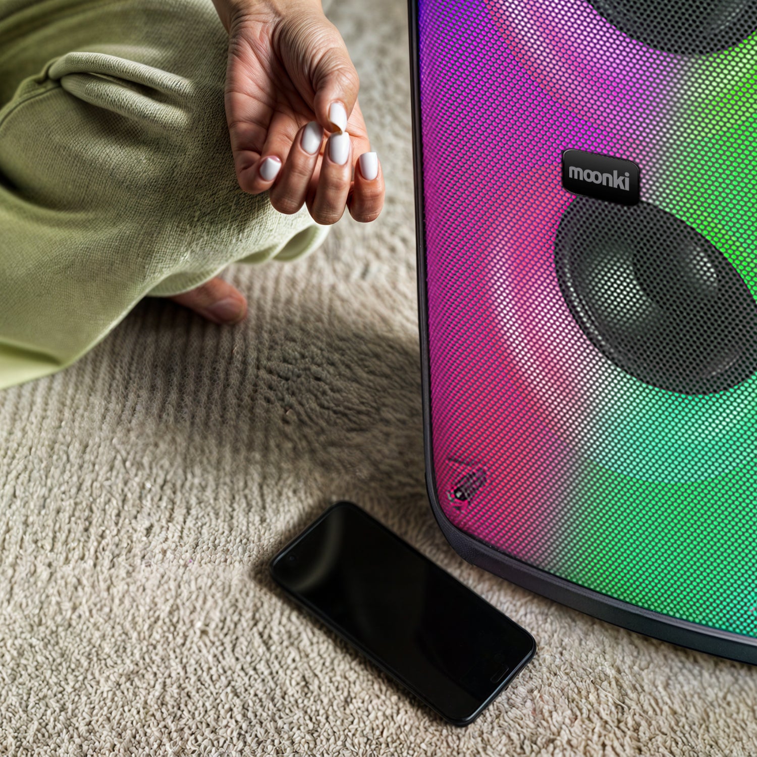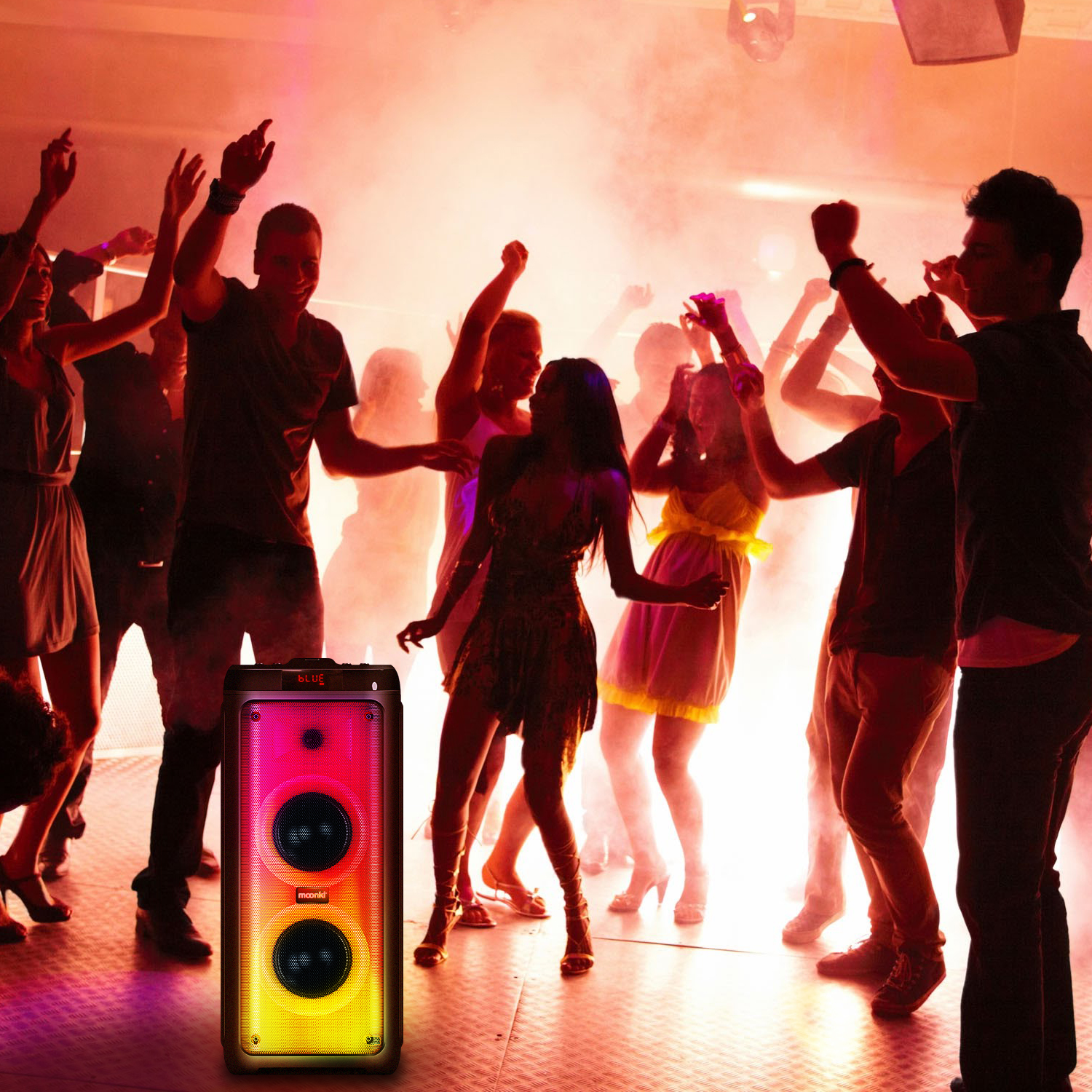Its control panel is designed so that regulating its functions is practical and comfortable. In a central location are the buttons with which the lights, modes and the TWS connection are regulated. The double microphone input is accompanied by the auxiliary input and both are surrounded by volume and microphone volume control wheels.