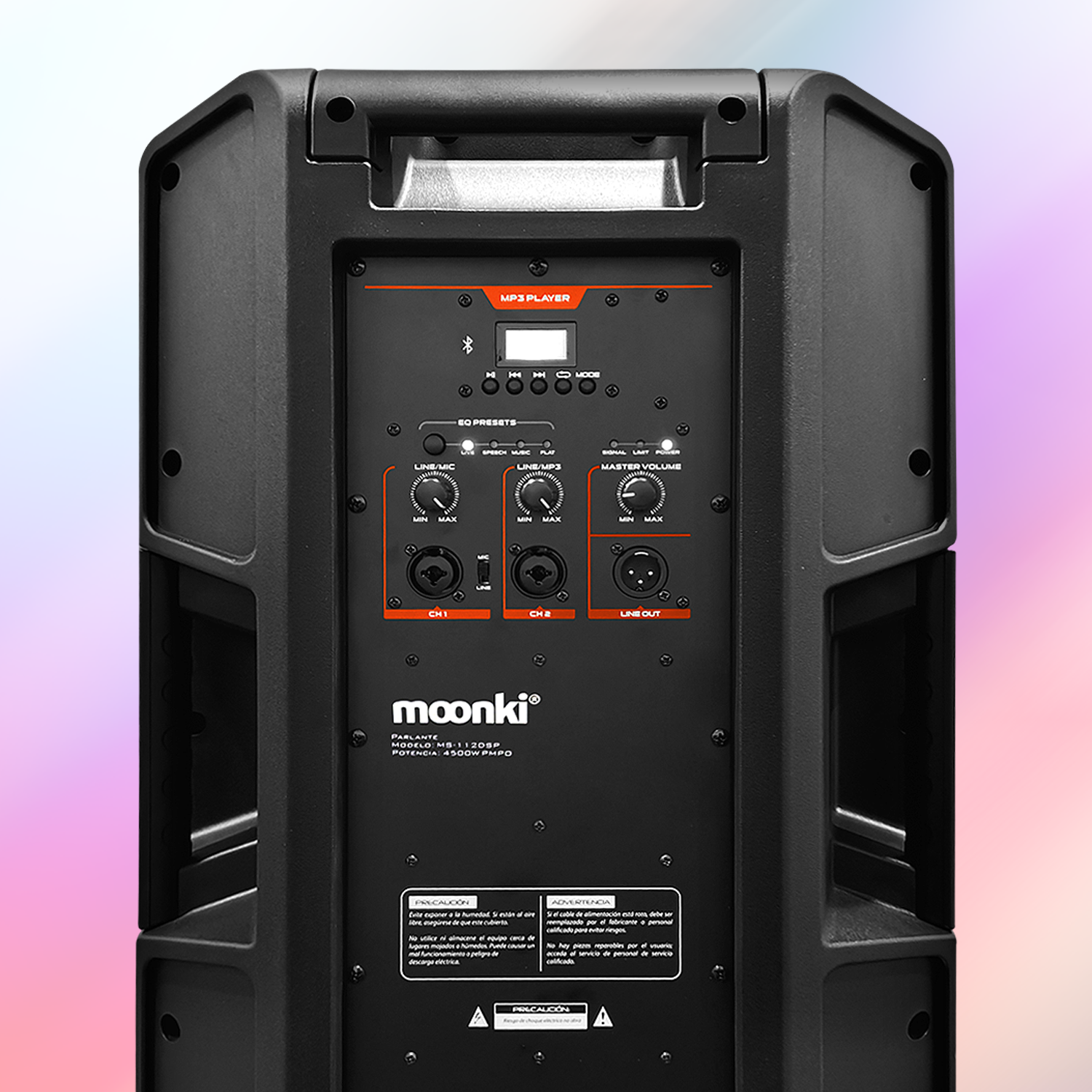 On the back of the speaker, the switches and inputs are distributed in such a way that it is possible to handle your equipment with fluidity and dynamism to adapt to the use options that you intend to give it. There is also the power input and the LED screen where the set values are shown, it also has light signals that indicate when the battery is already charged. Work with the sound in the ways you want: this Speaker offers the opportunity to connect a microphone and has other line inputs that favor professional use with voice and musical experimentation.