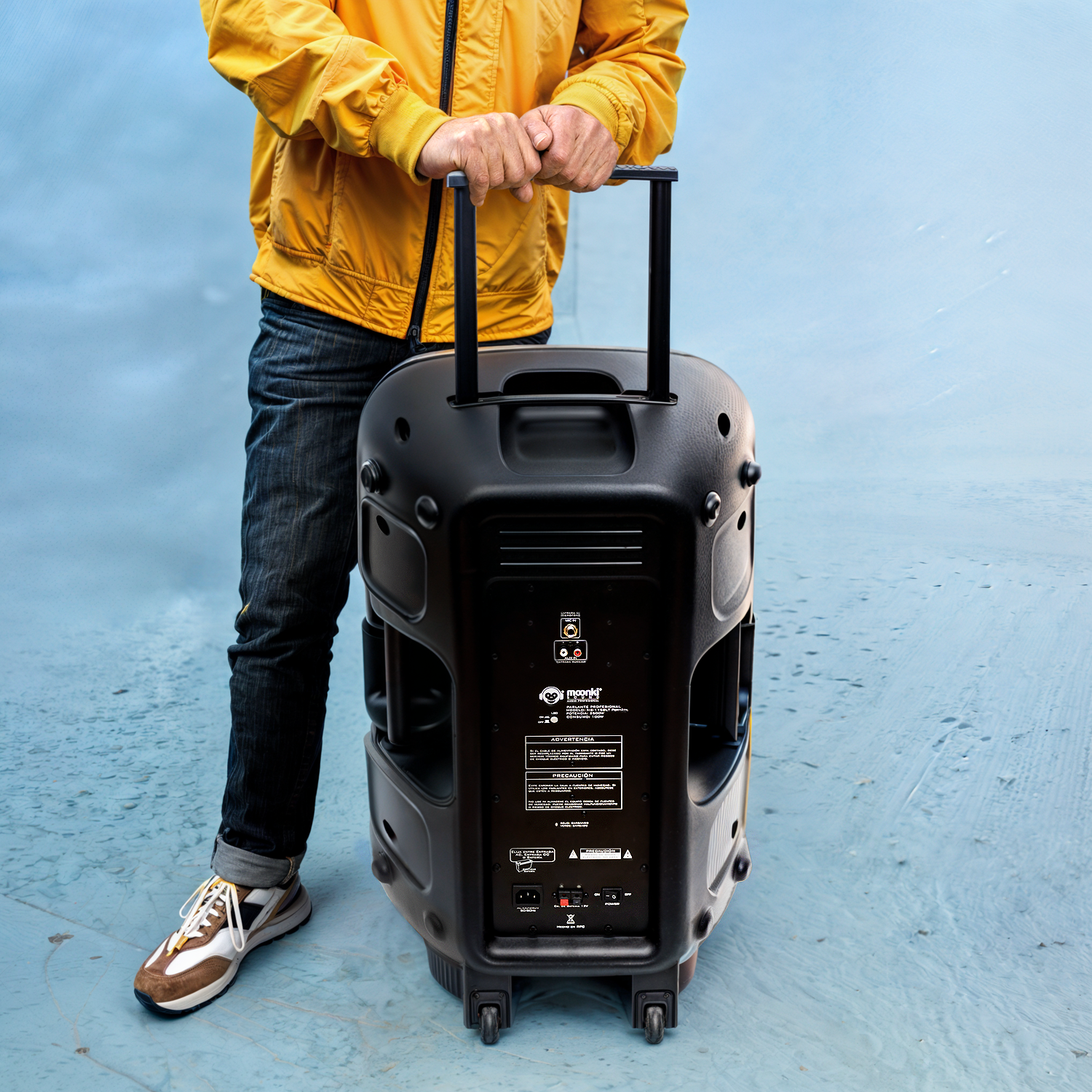 It is one of the most practical units and is ideal for carrying: its wheels with its spectacular retractable handle make it easier to handle and transport it to the place you choose to share your music.