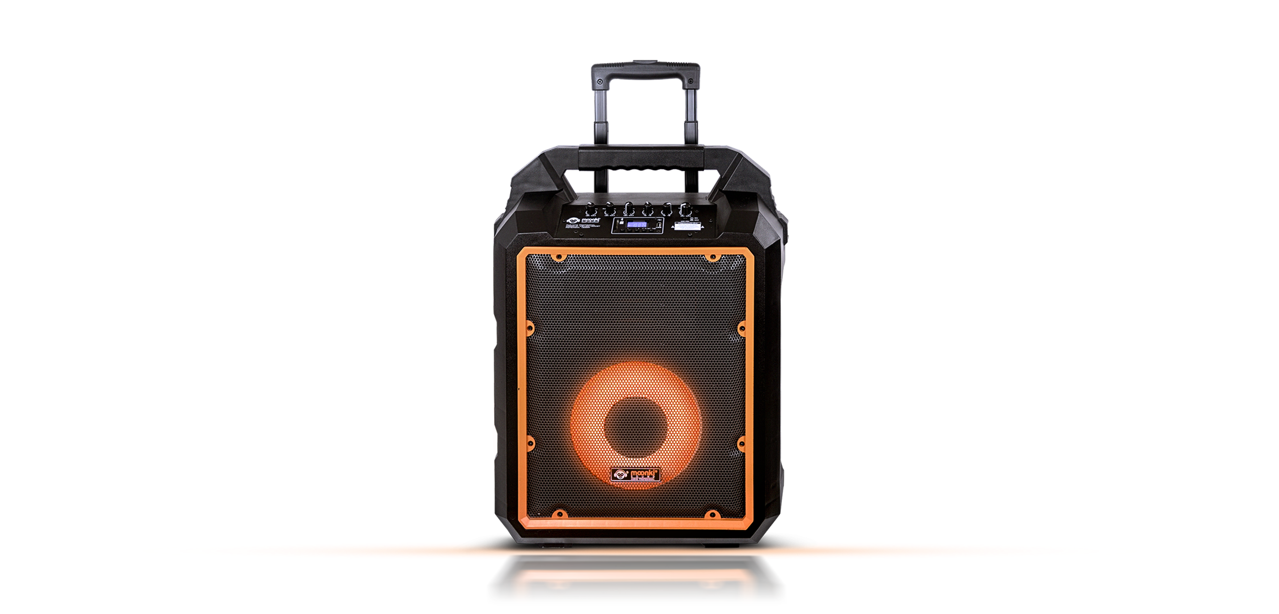 On one of its sides, this semi-professional speaker contains the on and off buttons and the 6.5mm auxiliary and microphone inputs. It includes a wired microphone with which you will not be able to stop singing. On the upper part, next to its grip handle, are the knobs to control 100% the possibilities of your speaker. Through its two-way configuration ensured by its 10¨woofer and its 25mm tweeter, it gives the greatest possible appreciation of bass and treble sounds, respectively.