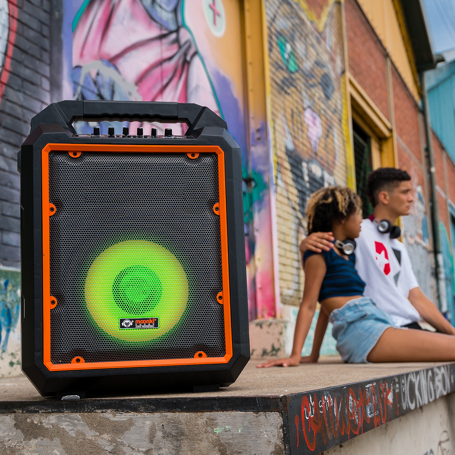 The Moonki Sound MS-1200B Speaker is a two-way active speaker capable of delivering true stereo sound with Bluetooth and TWS wireless connectivity. Its long and quality playback times are possible thanks to its power, its amplifier board and its high capacity gel batteries. It also provides a good atmosphere achieved through its LED light effects and, above all, a pleasant moment of relaxation to listen, sing karaoke and share your music in your own way.