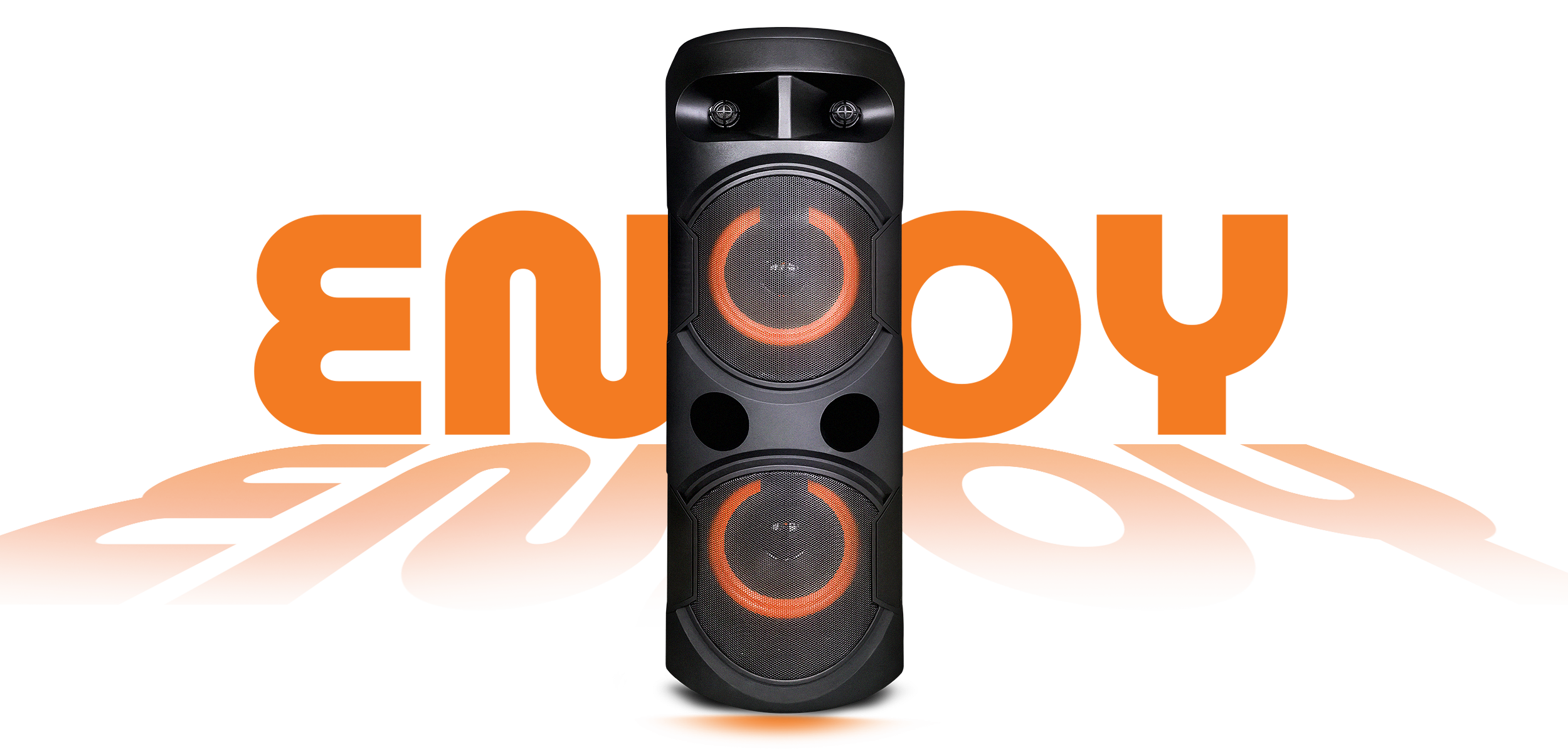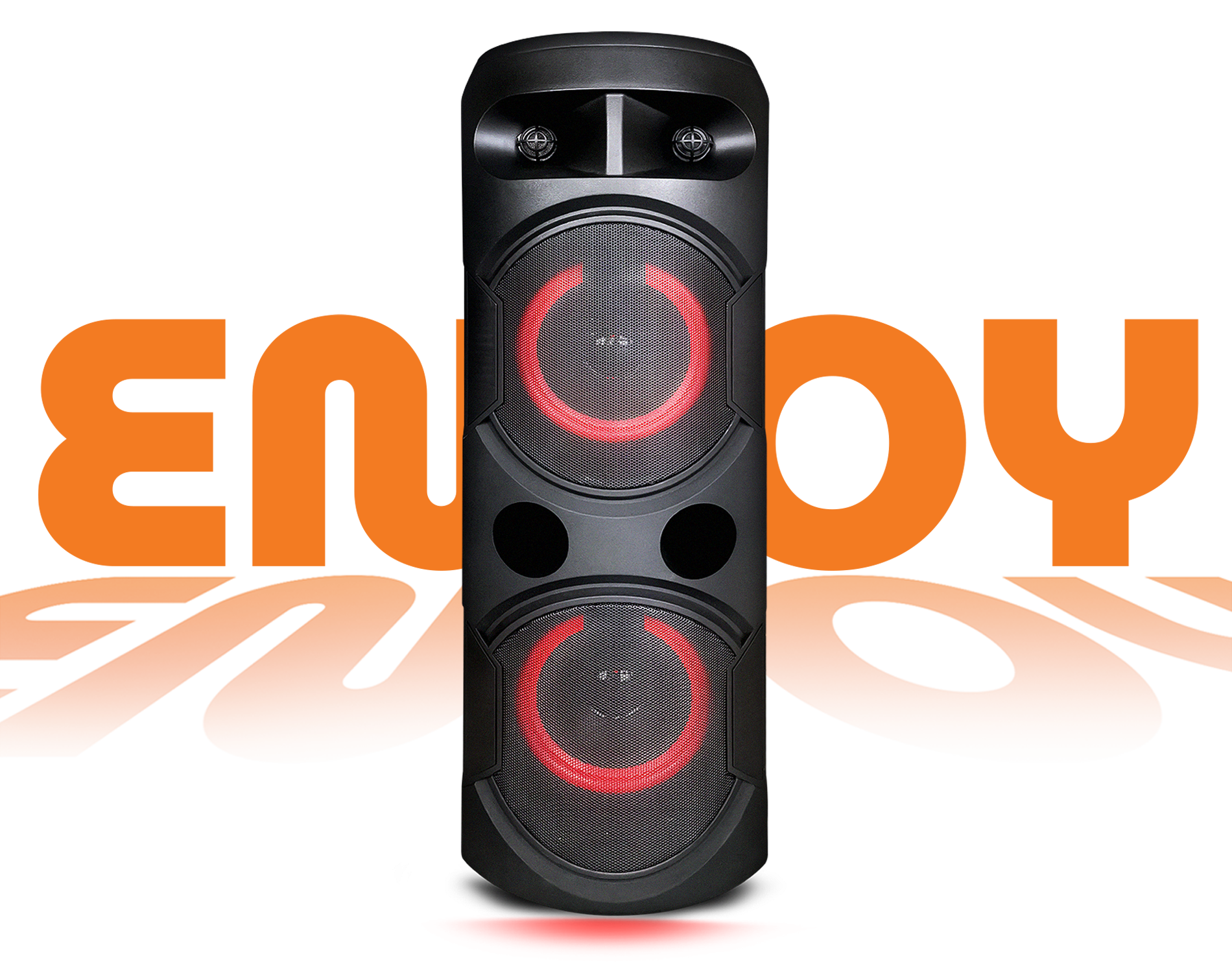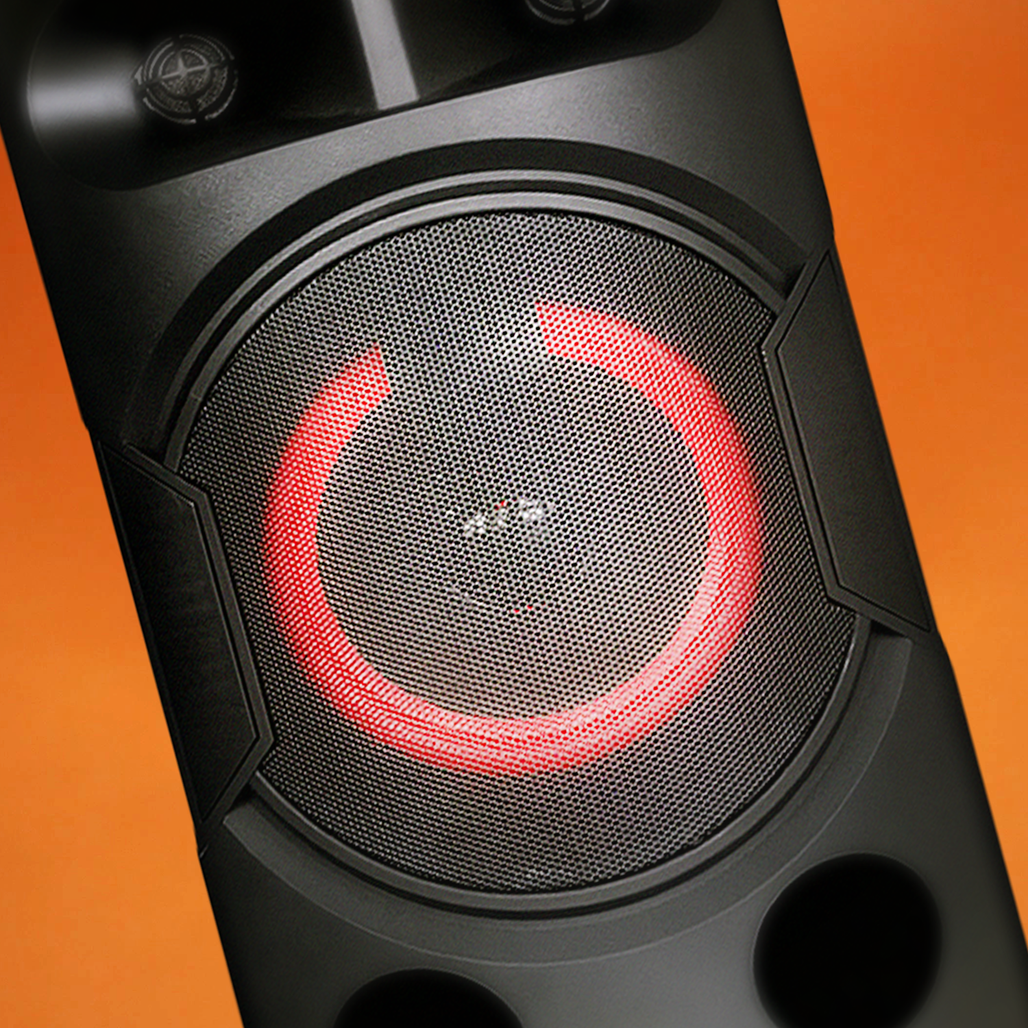 It has two 6.5” woofers with dynamic effect LED rings and two 1” tweeters.