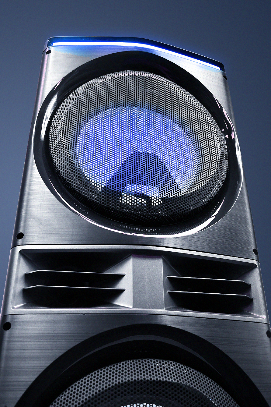 It has an incredible sound power of 3400W PMPO (230W RMS) and a strip of LED light on its upper edge for amazing audio-rhythmic effects.