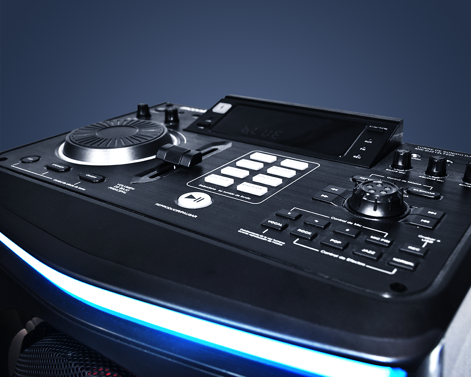 Its complete control panel allows you to regulate not only the reproduction and the volume but also the light and sound effects, the preset equalizations and much more.