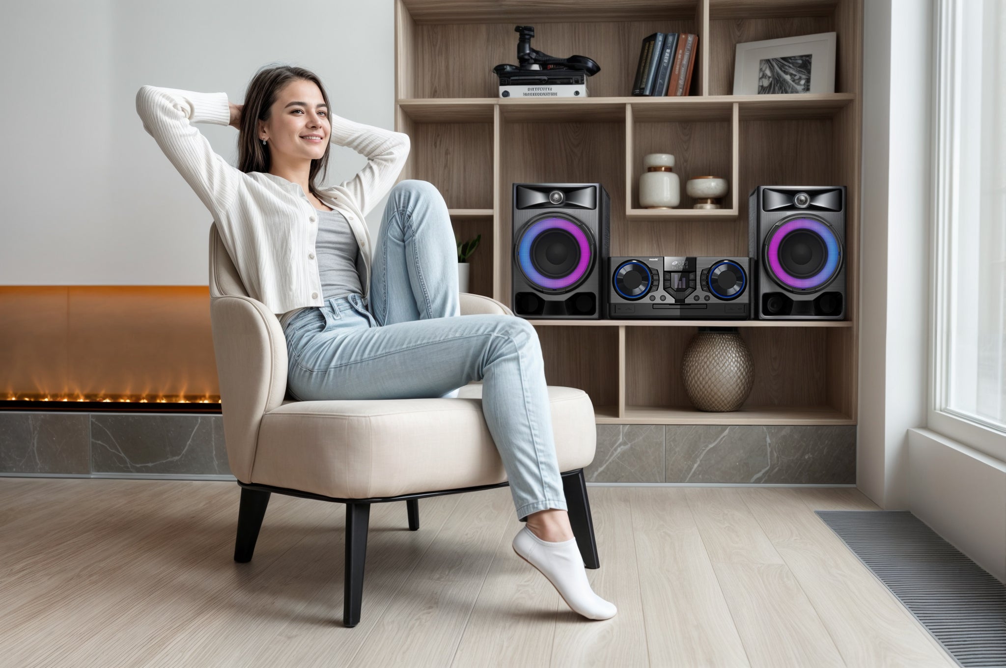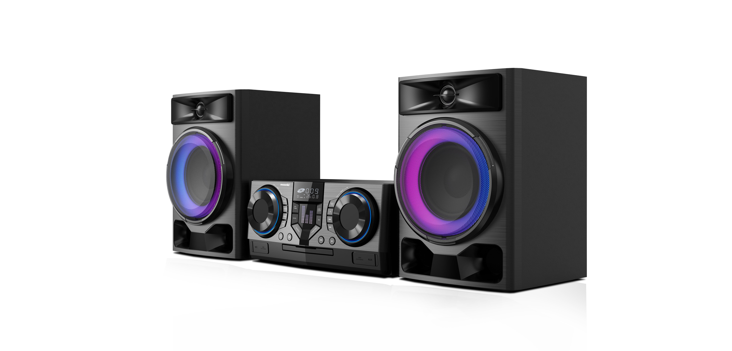 Pero este equipo no solo destaca por su impresionante calidad de sonido. También incorpora efectos de iluminación LED dinámicos que se sincronizan con el ritmo de la música, creando un ambiente envolvente ideal para fiestas, reuniones o simplemente para disfrutar de una experiencia más inmersiva en casa. Su diseño elegante y moderno se adapta perfectamente a cualquier espacio, desde una sala de estar hasta un estudio o área de entretenimiento.
