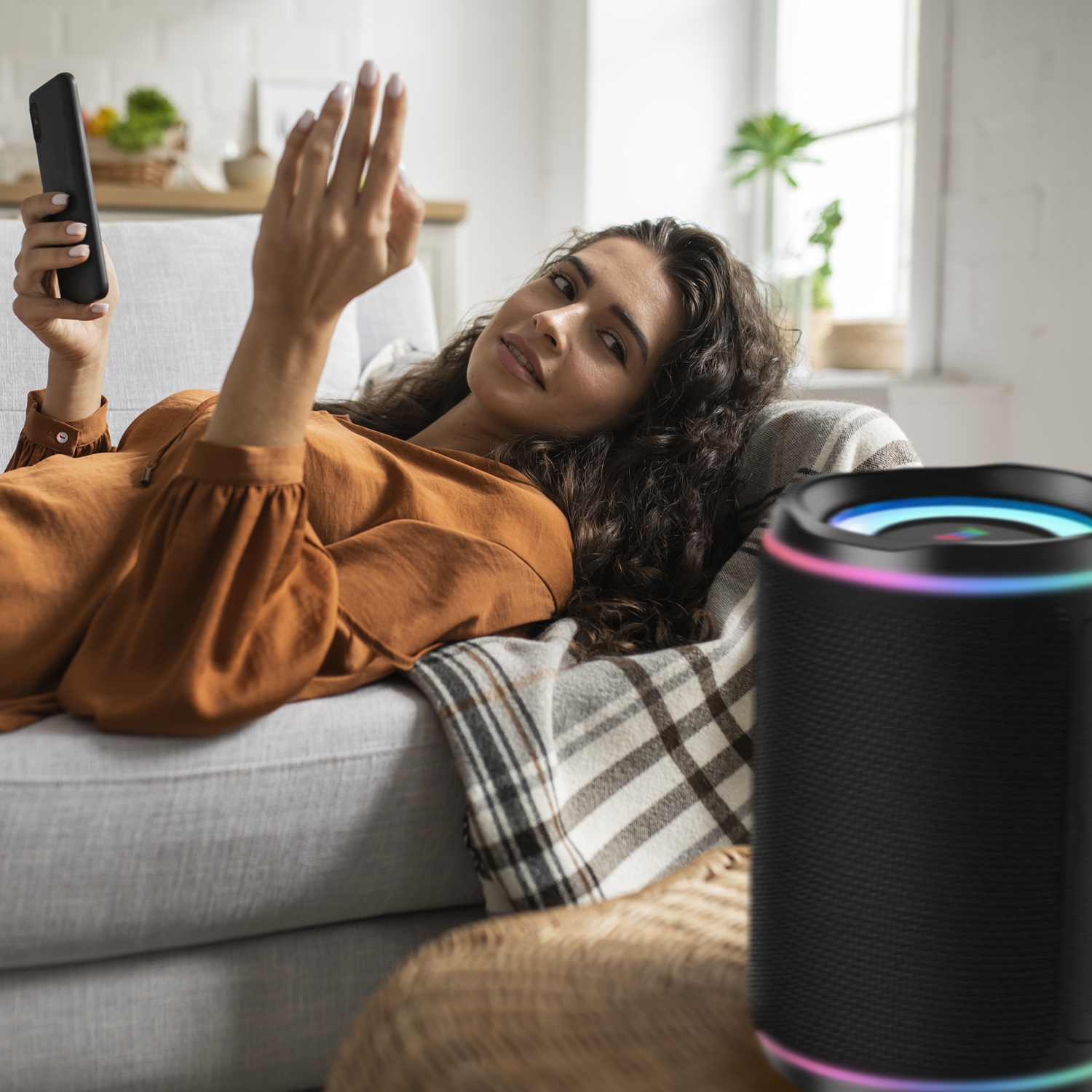 Its Bluetooth connection and TWS connection adapt to the circumstances of use that demand 100% cable-free connections, so you don't have to worry about anything other than enjoying yourself. But if you wish, it is also possible to connect an auxiliary cable.