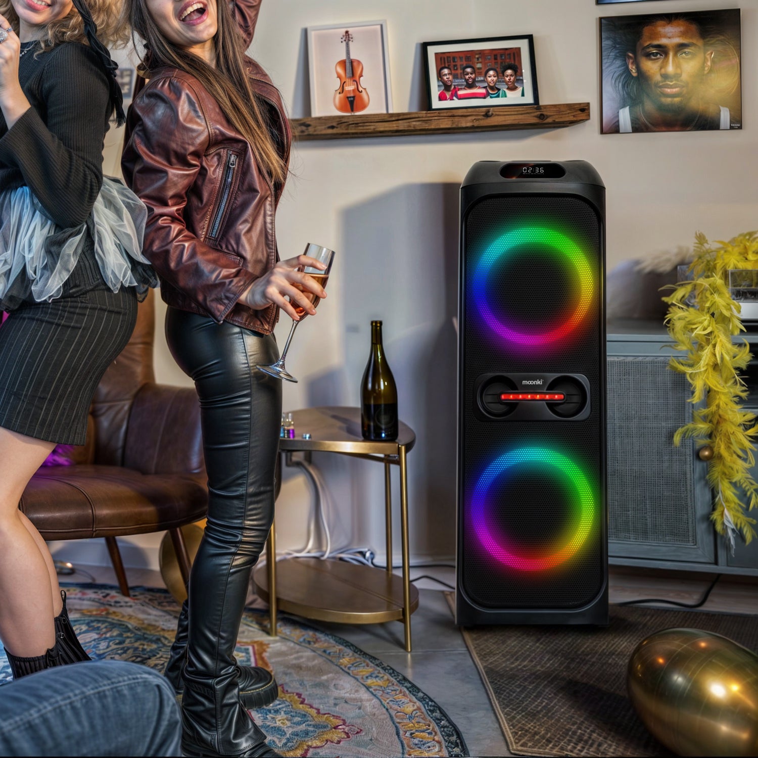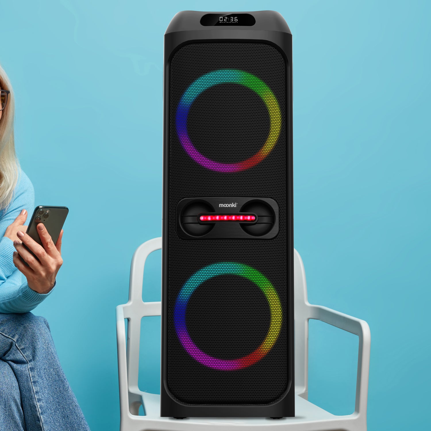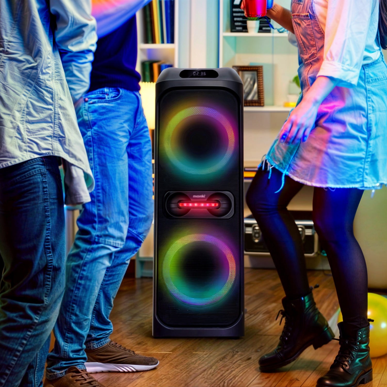 En el clímax de la presentación, la Torre Moonki revela su versatilidad y adaptabilidad, transformándose en tu centro de entretenimiento personalizado. El ecualizador, con controles de ajuste independientes de bajos y agudos, permite moldear tu experiencia sonora según tus preferencias personales. Es más que un altavoz; es una herramienta de expresión musical que se adapta a tu estilo único.