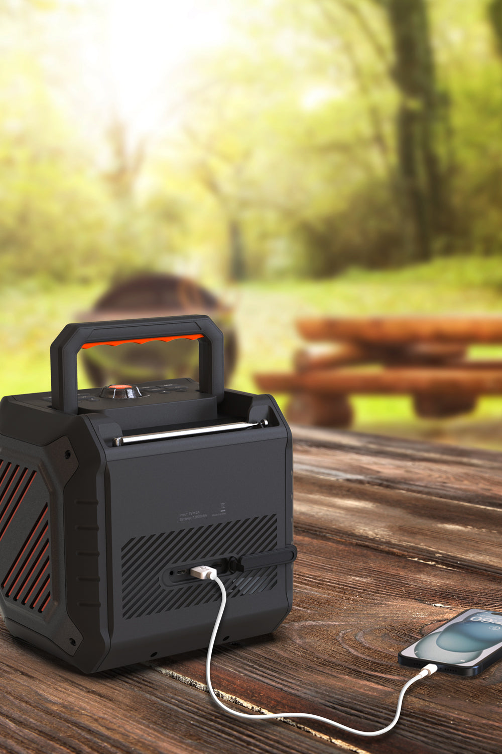 Equipada con antena retráctil de metal para mejor recepción, manija plegable para transporte fácil y ranura para celular para mayor practicidad.