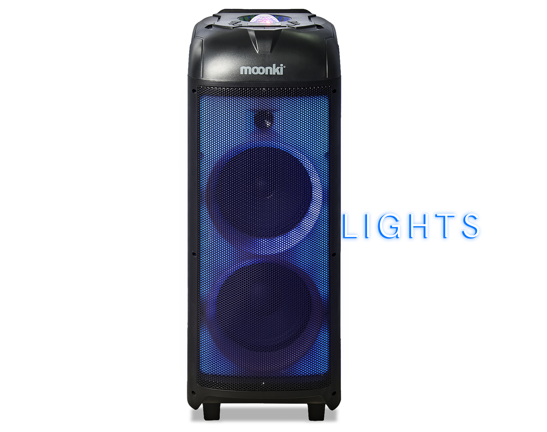 El Parlante para fiestas Moonki Sound posee una potencia sonora máxima de 1800W