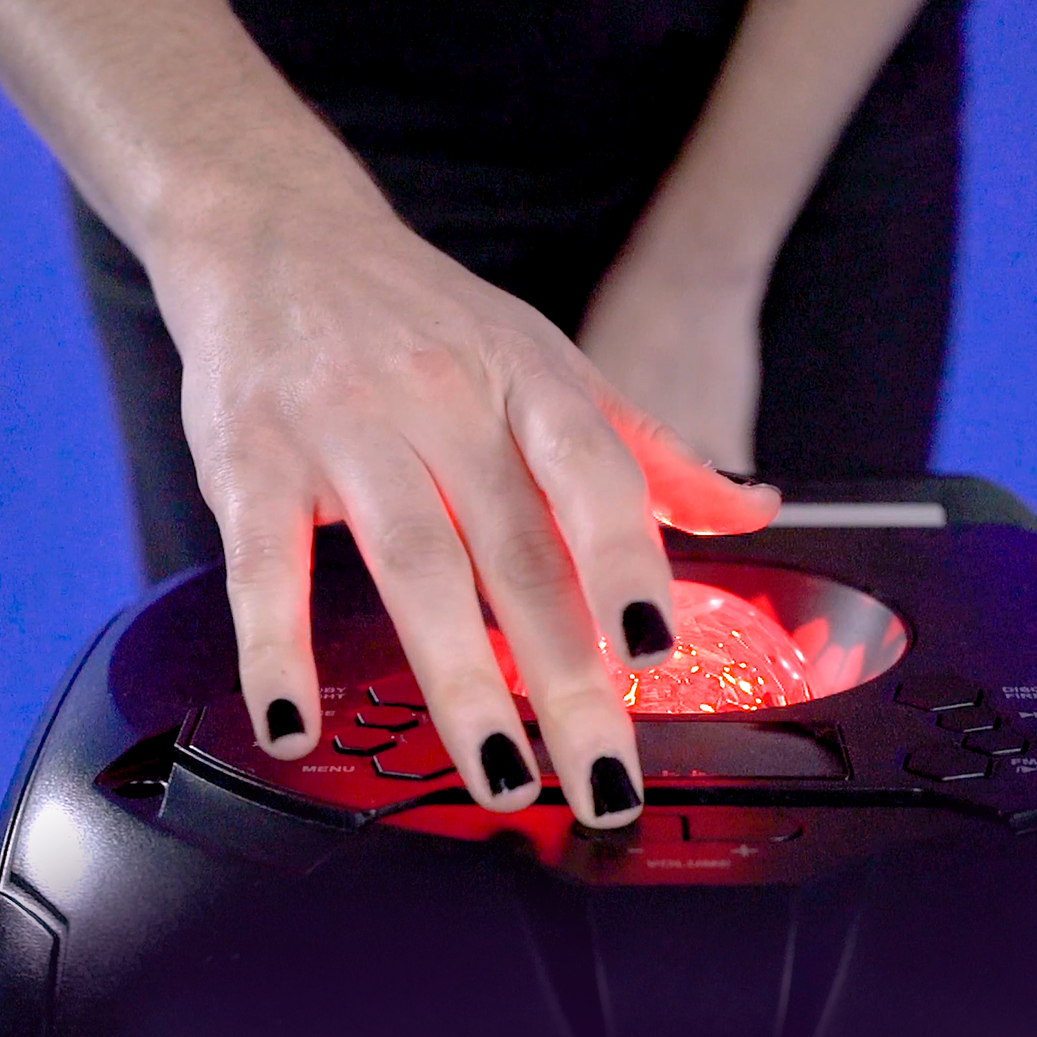¡Atención a la fiesta! Además contiene una esfera de luz en el panel superior que proyecta luces en todas direcciones, una barra luminosa en cada lateral y una símil flash en su parte posterior.