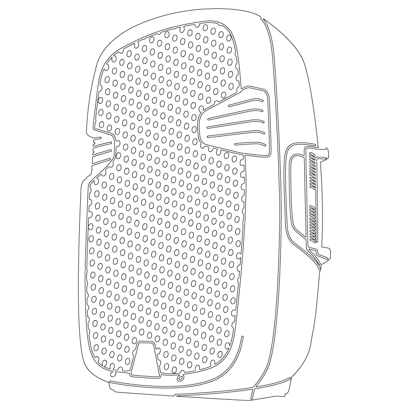 Todos los controles del parlante están ubicados en la parte posterior en donde se pueden encontrar sus perillas junto con las entradas y pantalla LED del reproductor mp3. Con efectos de luces incorporados que lo vuelven agradable visualmente, este parlante proporciona una rica experiencia con el sonido ya que su potencia alcanza 1600W (80W RMS) y su placa amplificadora es de clase AB, lo que le otorga una muy elevada calidad de sonido.