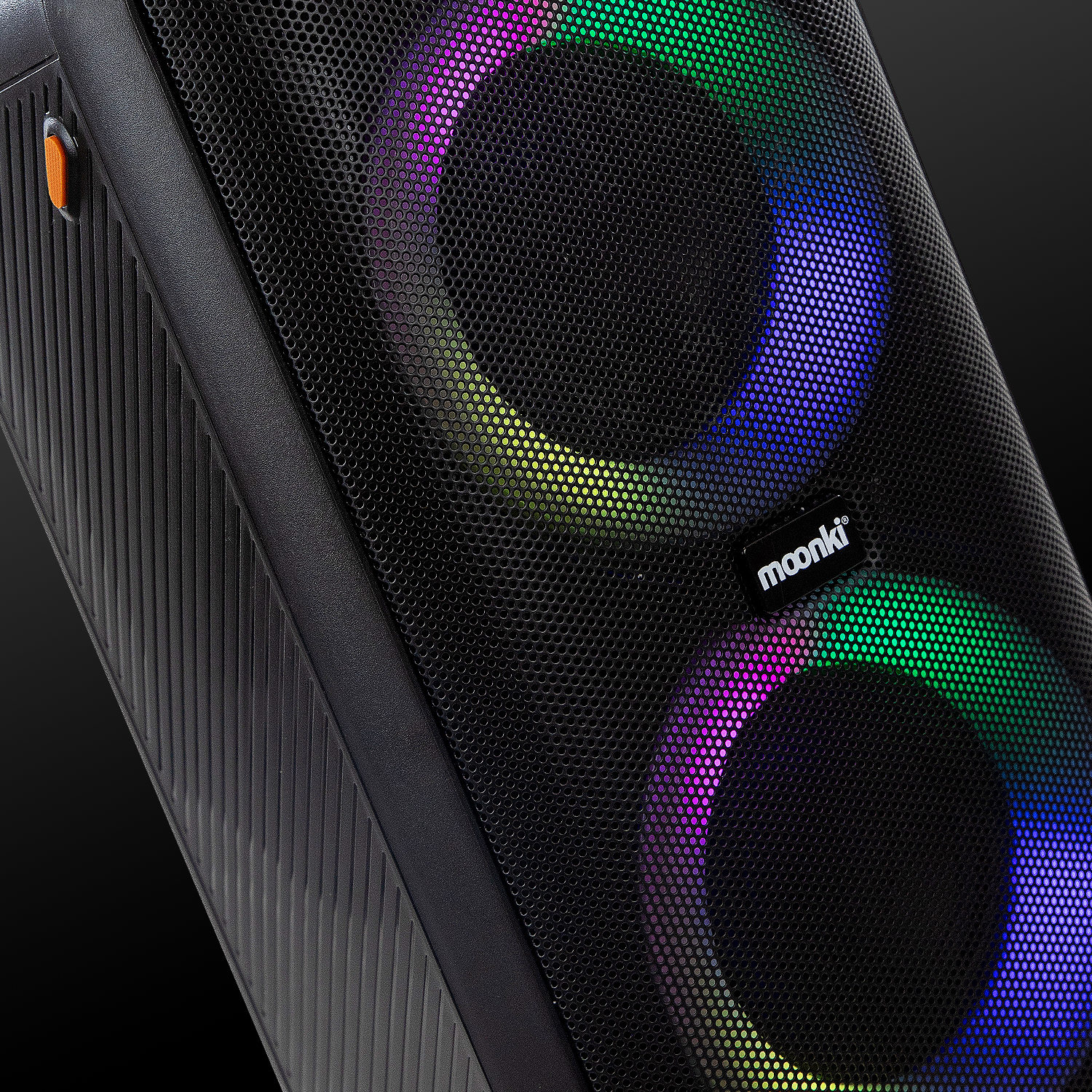 El Party Speaker Moonki Sound MW-PB250 es un parlante de fiesta activo de dos vías con conexión inalámbrica Bluetooth versión 5.0.