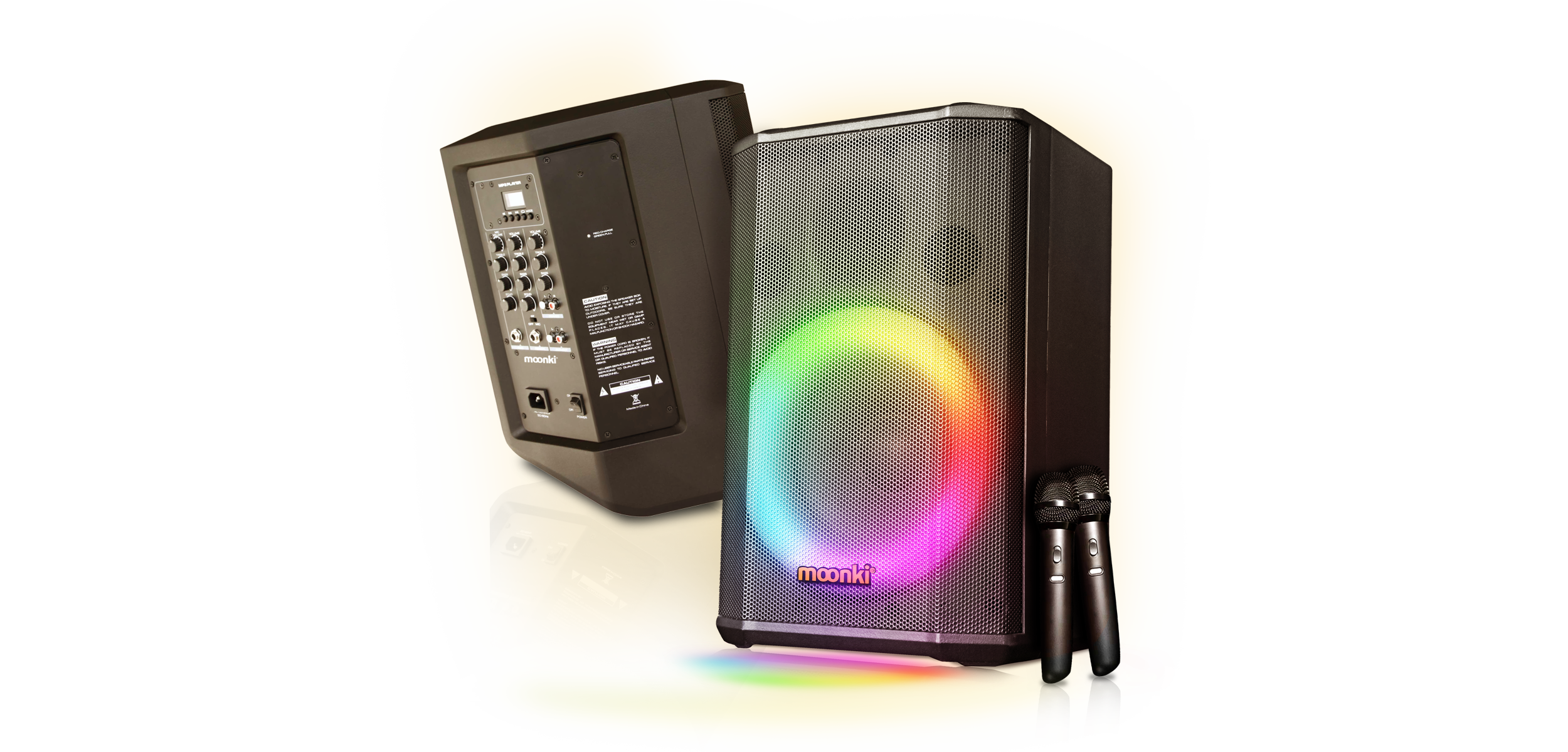 Para completar su funcionalidad, el altavoz viene con dos micrófonos inalámbricos UHF, ideales para presentaciones y karaoke.