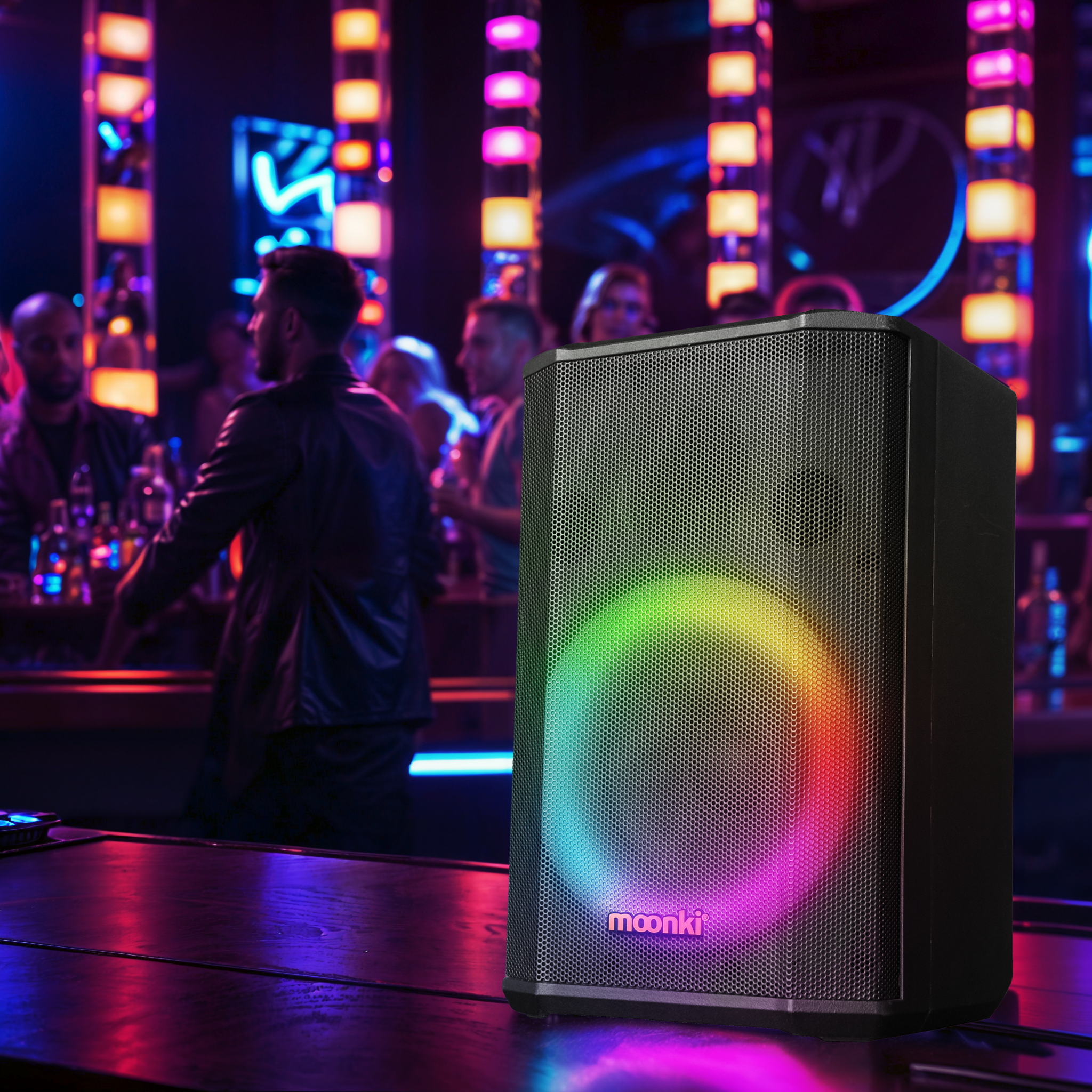 El Moonki Sound Malibu Max eleva la experiencia auditiva con su impresionante potencia y versatilidad. Con una potencia máxima de 1500W y una potencia RMS de 100W gracias a su placa amplificadora clase D, este altavoz ofrece ofrece un sonido potente y claro. Y sumado a esto, cuenta con una batería de gel de 7000mAh, que permite aprovechar al máximo la potencia sonora del parlante y un máximo