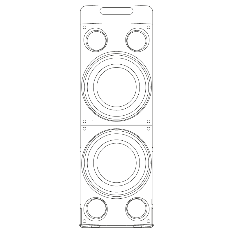 Ambos os woofers incorporados nesta torre de som são de 8". Sua qualidade de som merece perfeição e é por isso que também contém dois tweeters de 3¨.